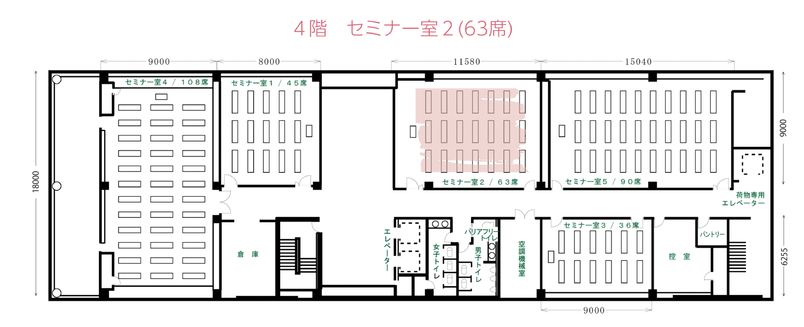 セミナー室2110㎡スクール形式63席1.5kw8,90012,20012,20021,10024,40033,300
