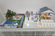 「バイオマスガス化発電」を活用しての持続可能な地域づくりをイメージしたジオラマ。