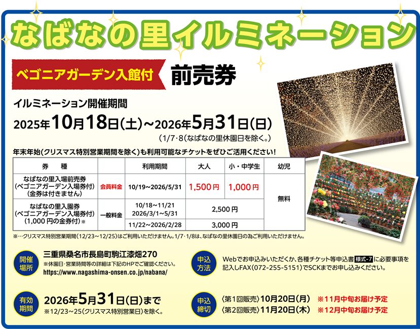 なばなの里イルミネーション前売券(ベゴニアガーデン入館付) 10/18(土)~2026/5/31(日)