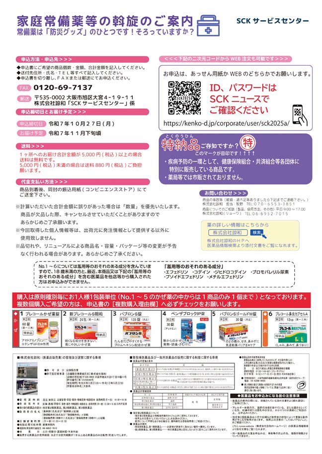 家庭用常備薬のあっ旋 【㈱諒和】