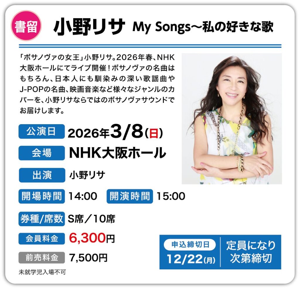 小野リサ My Songs~私の好きな歌 2026/3/8(日)