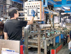 ▲データ管理のためのコンピュータソフトと生産ラインを連動させた「全自動電気亜鉛めっきライン」。タッチパネル1枚での管理が可能になった。