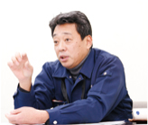 ▲「地震はいつ発生するかわかりませんから、ラジオや懐中電灯、非常用品を常備しています。自分たちの身は自分たちで守るという意識改革中です」と藤本邦三常務。