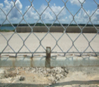 海岸部での比較。塩分に強いIR被覆鉄線はさびないうえに、無色透明なので内部の目視検査も可能。