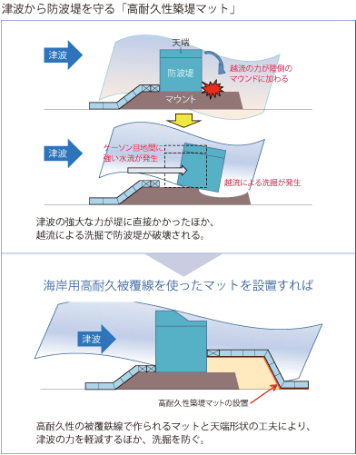 津波から防波堤を守る、海岸用高耐久被覆線の開発へ