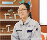 ▲ものづくりに関心があったことが同社への入社志望動機だったという千本都代さん。事故で休職した時に社員の方々の温かさを実感したと語る。