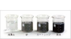 ▲水に溶かした墨の粒子もろ過できる珪藻土ろ過方式。