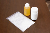 ▲少量試作など大手メーカーが手掛けにくい案件を自社設備で対応。写真の商品は、塗料インキ添加剤、医薬中間体。