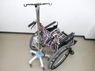 点滴ポールスタンドをワンタッチで車椅子に装着