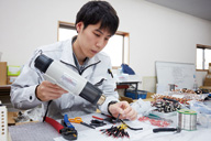 「堺刃物の医療分野への進出」27年前の思いは今も変わらず、いよいよ本格的に動きをスタートさせています。まず、大学病院からの課題が、磁性を帯びていない医療用刃物。強力な磁気を発するMRI装置のそばでは、磁性のある医療用刃物が吸いつけられて飛び、危険なのだとか。磁性を帯びない素材の選定から始めています。また、製品づくりの際に役立つと考え、医療用刃物の研ぎ直しも引き受けています。