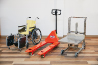 ▲得意の物流機器で培った技術力を活かしたトレーニング用足踏み車いす「Joyfum」(左)をきっかけに、同社への新たな挑戦が始まっている。