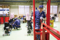 今後の事業展開について、奥田社長は大きく2点「医療・福祉分野への進出」と「グローバリゼーション」を掲げました。福祉関連でいえばすでに、関西大学と共同開発したトレーニング用車いす「Joyfum」を発売しており、現在は、「介護の現場で人を軽く楽に運ぶ、動かす」介助用機器の開発を進めているほか、医療現場でも重い機器の運搬で貢献できると考えています。