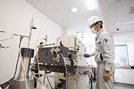 ▲循環型社会のために必要な自社の超臨界技術。浜寺工場では、あらゆる分野の試験を手がけている。