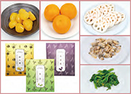 ▲生鮮、冷凍野菜・水産物、栗加工品など、同社の強みは、徹底した安心・安全な商品作り。