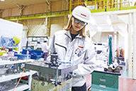 ▲②部品の組立作業工場見学で3Kのイメージを払拭 子育てしながら働ける環境も
