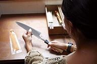 そして、一流の職人による「鍛冶」「研ぎ」という工程を経た刃に柄をつける最終工程「柄付け」を担っているのが、同社の女性従業員たちです。