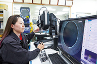 ▲製品に亀裂やひび割れなどがないかマイクロスコープで検査。