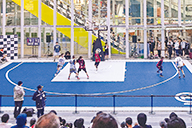 ▲新規事業として3×3バスケットボールで使用するジョイント敷設式のコートも手がけている。医療用チューブコネクターで扱いの難しいPVC樹脂に挑戦