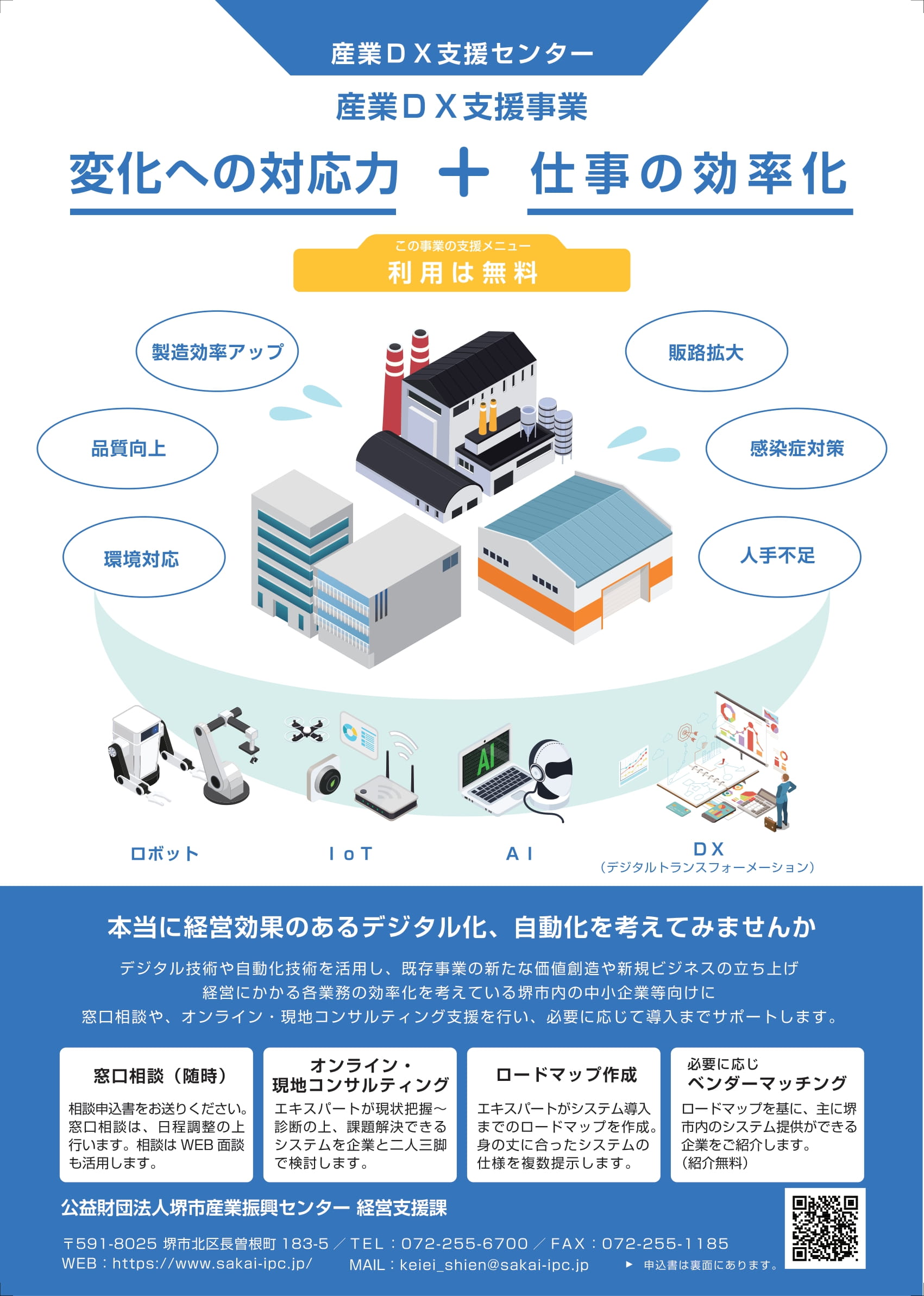 - 産業DX支援センターでは、「堺市内のデジタル化・自動化促進サポート企業」をデジタル冊子で紹介しています。