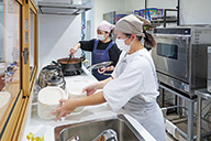 ▲食育も大切にしている同園では、子どもたちの給食も園内で調理をしている。