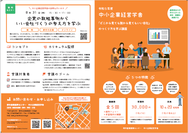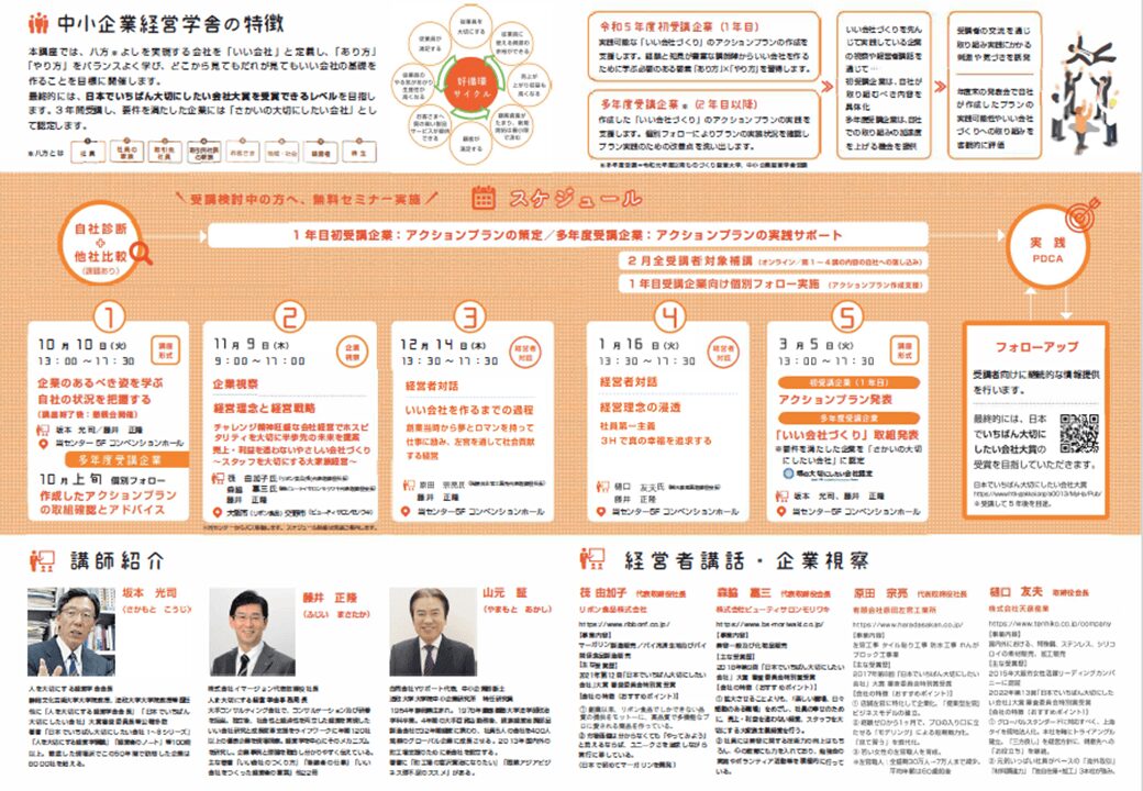 令和5年度 中小企業経営学舎 「どこから見ても誰から見てもいい会社」のつくり方を学ぶ講座 開講のご案内